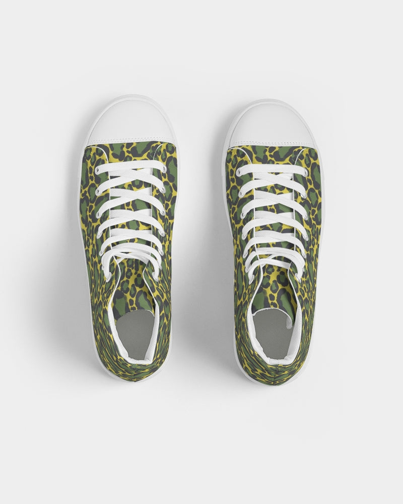 About The ArtKai is a funky animal print for the earthy or quirky soul. This Jungle inspired pattern is part of the Wildly Collection and features various shades of green in a modern take on cheetah print. The Wildly Collection is all about being you, bravely and owning your own wild side. It encourages leaning in to that desire to shake off the mundane and go do something colorful with your life. Drawing inspiration from the glam rock 70s, novelties of the 80s and neon of the 90s this collection has something for any generation. Slide on a pair of rainbow zebra leggings and paint the town with the cheerful pep coming from your step, or maybe coming from your colorful cheetah print shoes. Product DetailsRock your custom made kicks on a trendy classic. Our Men's Hightop Canvas Shoe is a minimalist sneaker but gives comfort for a day or edgy night look.